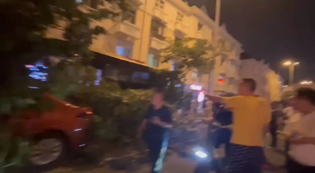 很多视频显示,路边的树倾倒了,一辆红色的车被压在树下。红色汽车旁边的一辆公共汽车与白色汽车发生碰撞,白色汽车尾部受损,现场有人受伤。