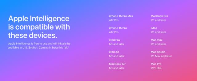 目前,Apple Intelligence 仅支持在 iPhone 15 Pro 系列和搭载 M1 及以后芯片 iPad 和 Mac 使用设备。
