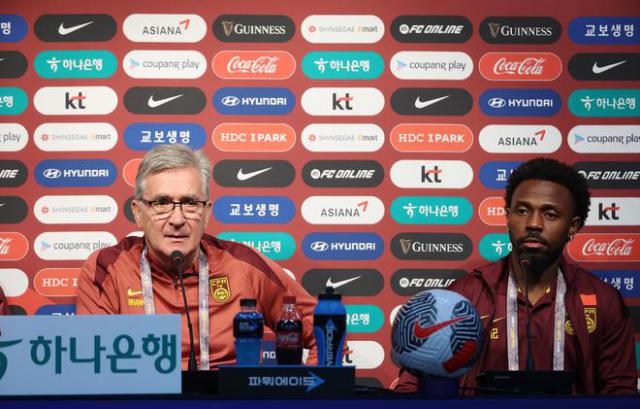 北京时间 11 日晚间 7 点,世预赛 36 第六轮强赛即将开始,国足前往客场挑战韩国队。十 日傍晚 5 在赛前的新闻发布会上,国足主教练伊万科维奇和前峰费南多一起参加。