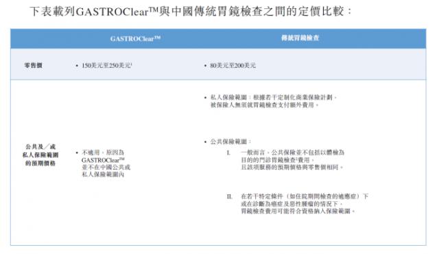 同时,与传统做胃镜相比," GASTROClearTM “检查比较贵。根据招股书,传统胃镜零售价格为 80 至 200 美元,而且如果购买私人保险,可以降低相关费用,而“寻小卫”则不在保险范围内,价格是 150 美金至 250 美金之间。