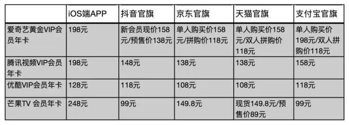 未来,如果天猫、京东跟风抖音,针对iOS用户全面下架上述会员商品,将会彻底截断iOS端的长视频用户享受电商低价的权利。