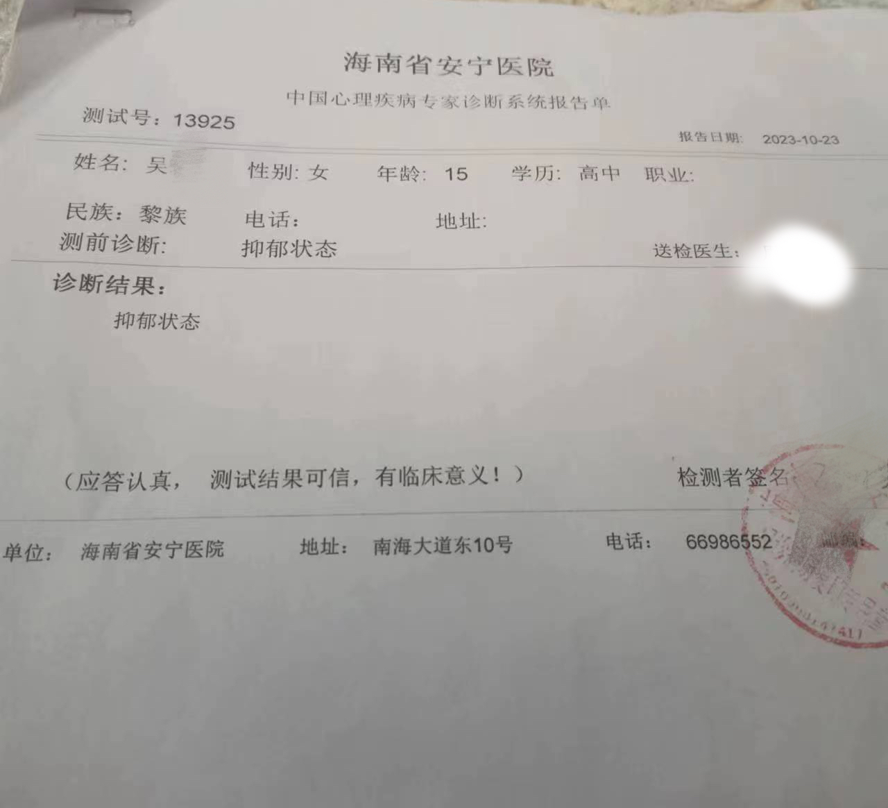 吴花(化名)于2023年10月被诊断为“抑郁”。