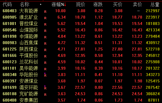 煤炭板块上涨