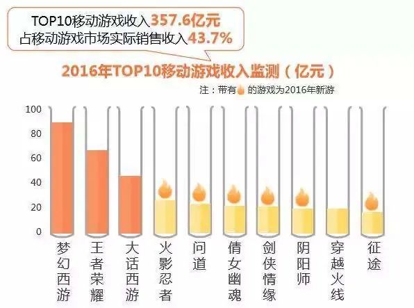 2016年,国内手机游戏收入第一名依然是《梦幻西游》,《王者荣耀》可能是第一次也是最后一次排名第二。腾讯的《火影忍者》排名第四,正式拉开了“原IP授权”的序幕。当年网易推出的《阴阳师》超过了《穿越火线》排名第八。