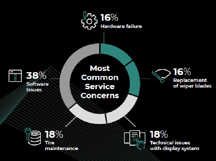 |2023年秋某市场调研机构展望全球电动汽车维修市场未来各部分比例:38%将是数字软件故障、轮胎维护和显示系统异常的18%、雨刷和其他硬件问题各占16%