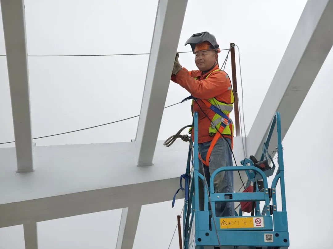 魏学建,来自安徽阜阳,是沪苏湖高铁的建设者。苏州段建设任务完成后,公司调到练塘站项目,主要负责平台雨棚的安装和焊接。看到记者在采访中,他主动放下手中的焊枪,聊起了在这里生活和工作的经历,言语中充满了自豪和情感。他说:“能参与沪苏湖铁路建设,感到非常自豪,来到这里工作的心情非常舒适,工资和生活都有保障。”