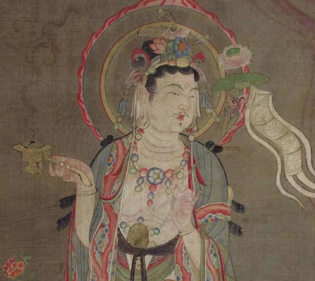 藏唐代绢画《大英博物馆引路菩萨雕像》(局部)
