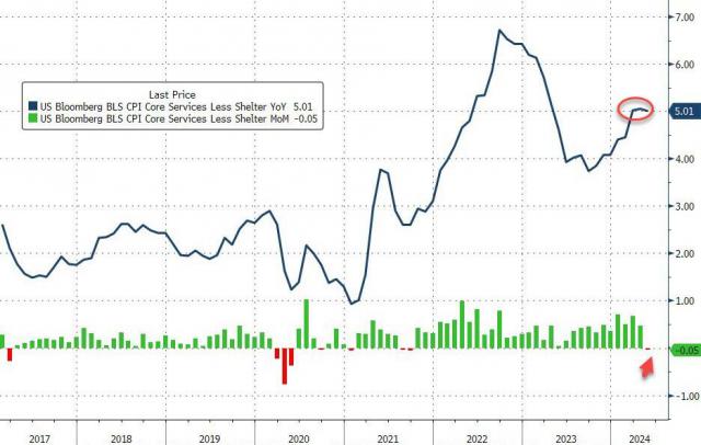 实际上,核心指数的涨幅是 0.16%,经过四舍五入之后,几乎只上升了。 0.1%。除了住房以外,核心服务业的下降很大。 0.04%,这是自我 2021 年 9 从月份开始,首次出现负增长。这使 2024 每年两次降息是可能的,而且是市场。 2025 每年更多的定价降息打开了大门。