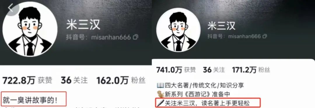 根据米三汉自己的介绍, “ 只是一味地讲故事 ” 到如今的 “ 关注米三汉,读名字更容易上手。 ”,他也是知识分享类博主。