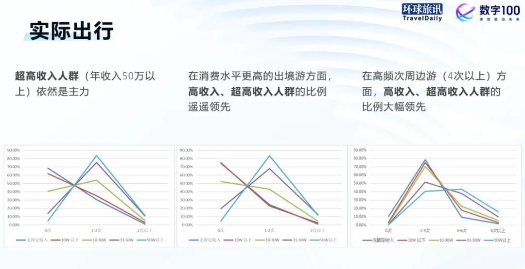 - 高收入、超高收入人群年收入超过30万,周边游一般达到4-6次。