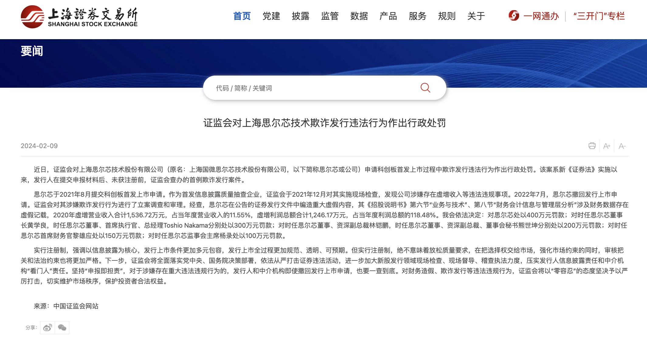 上海证券交易所认为,思尔芯通过虚构销售交易、提前确认收入等方式,明显具有主观意图,虚报营业收入和利润总额。已经被中国证监会《行政处罚决定书》确认和核实,违规事实明确,影响恶劣。根据有关规定,鉴于上述违规事实和情节,经本所政纪律处分委员会批准,决定对5年内不接受发行人提交的发行上市申请文件的上海思尔芯科技有限公司给予政纪处分;对相关责任人给予公开认定,3年内不适合担任发行人董事、监事、高级管理人员的政纪处分;对其他发行人提交的发行上市申请文件的政纪处分,思尔芯时任董事长黄学良在一年内不接受其控制。