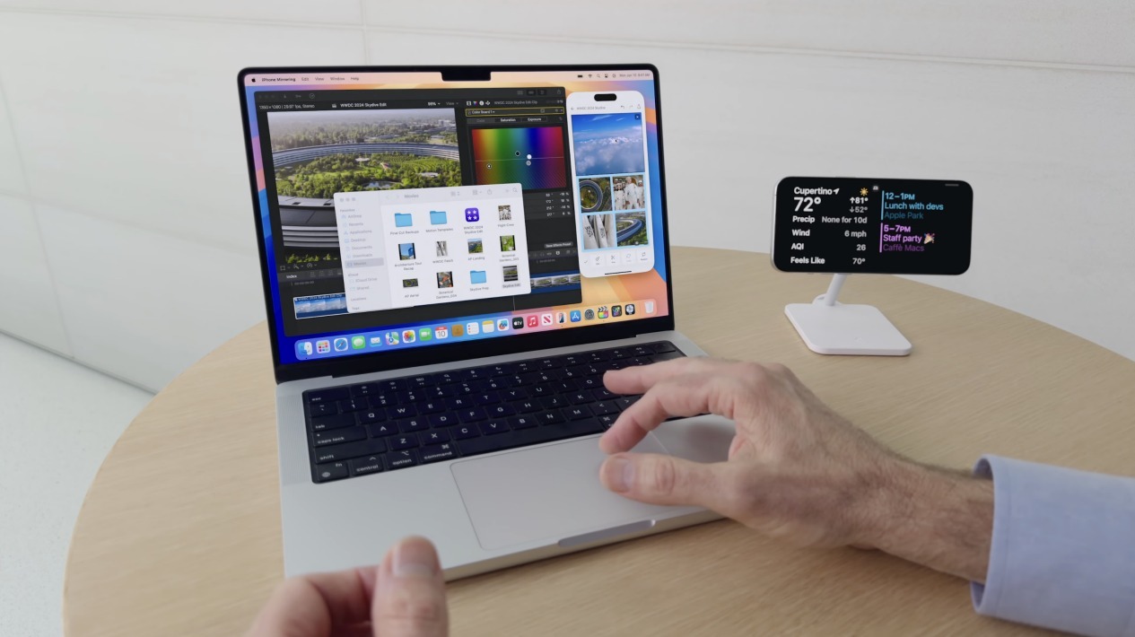 虽然我们不能提前体验iPhoneMirroring,但苹果在新闻发布会上做了详细的演示,这样我们就可以提前知道iPhoneMirroring的所有功能。