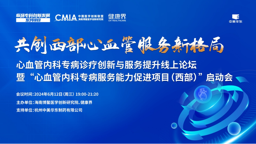 2024年6月12日,由海南博鳌医学创新研究院、健康界主办、中美华东支持的“心血管内科疾病诊疗创新与服务能力提升在线论坛暨心血管内科疾病服务水平提升项目(西部)启动会议”成功召开。同时,在全体嘉宾的共同见证下,“心血管内科疾病服务水平提升项目(西部)”正式启动。