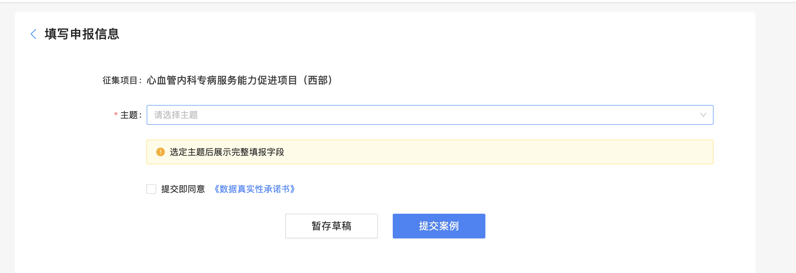 第四步:打印《心血管内科专项疾病服务水平促进项目-案例申请声明》,由部门负责人签字,扫描后上传至【申请案例-证明文件】