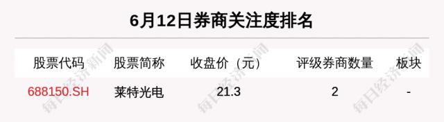就券商对个股的关注程度而言, 1 只有一只股票得到了很多券商的关注,而莱特光电(6881500)是券商关注的最高股票。.SH)。