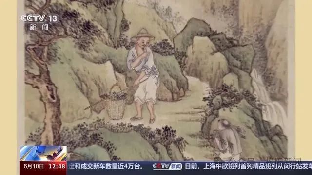 高山上,树木苍翠,此时此景仿佛穿越到清代画家徐扬创作的古画《端阳故事图·采药草》。
