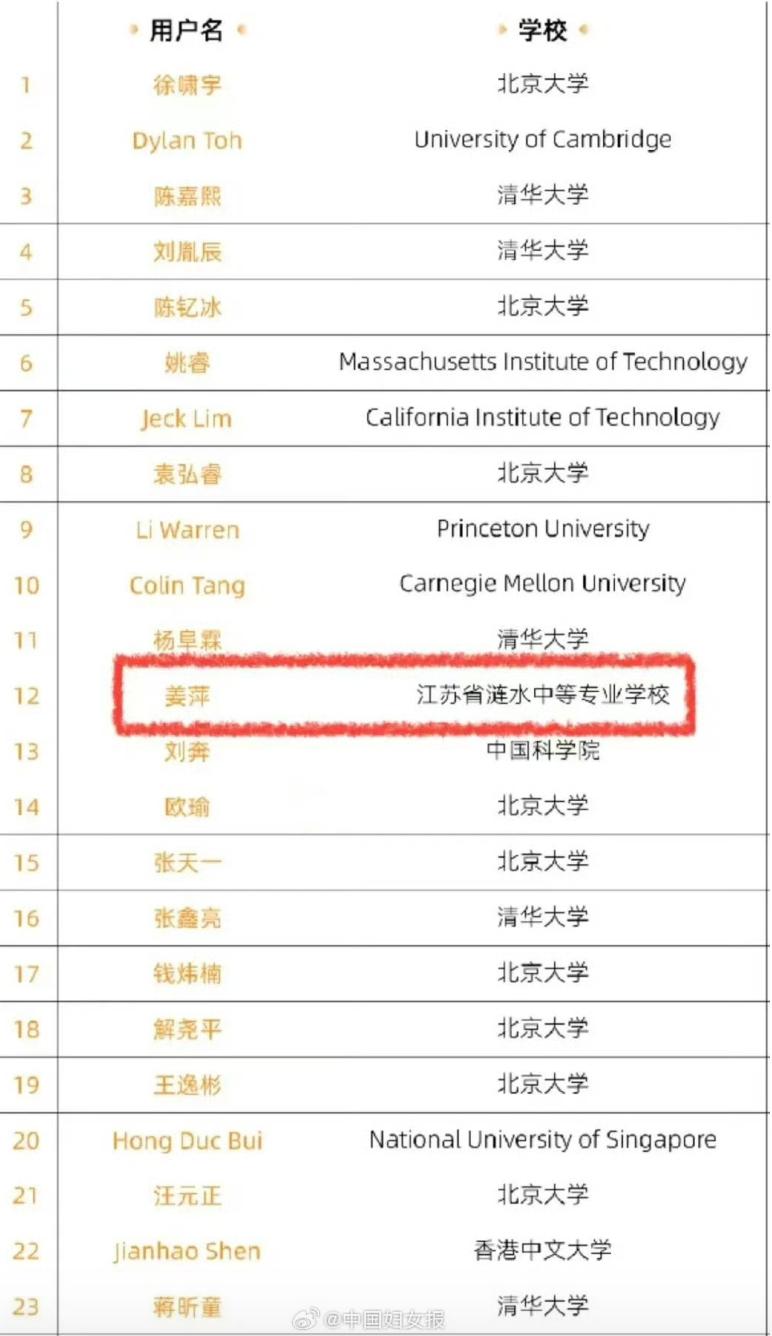 全网爆炸!17岁的中专女生进入全球数学竞赛前12名,英雄不问出处。