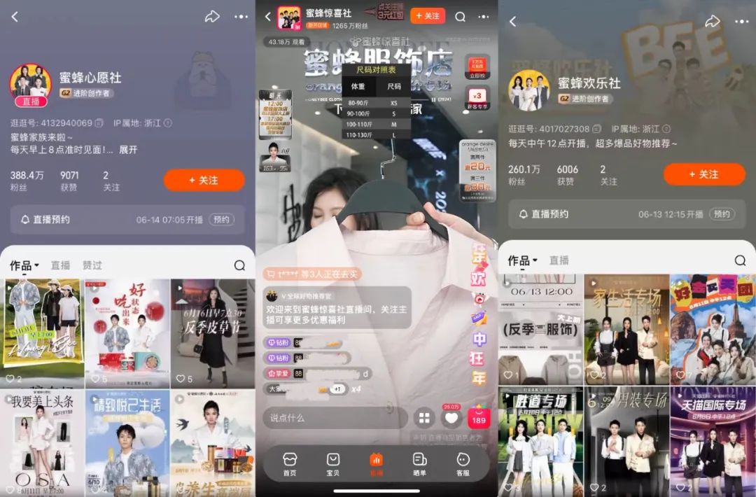 自2022年2月起,谦寻在淘宝平台上相继推出了“蜜蜂惊喜社”、凭借薇娅的知名度和影响力,“蜜蜂快乐俱乐部”和“蜜蜂愿望俱乐部”三个直播账号的粉丝数量迅速上升,分别达到1265万、260.1万和388.4万。