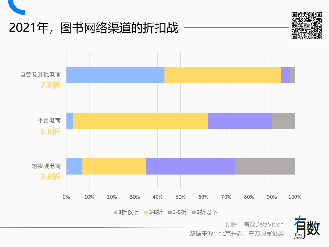 2011年,书的主战场还在新华书店等线下门店,网店卖书的极限折扣只有6折[3]。到目前为止,传统电子商务的折扣已经超过50%,短视频电子商务的平均价格低于50%。
