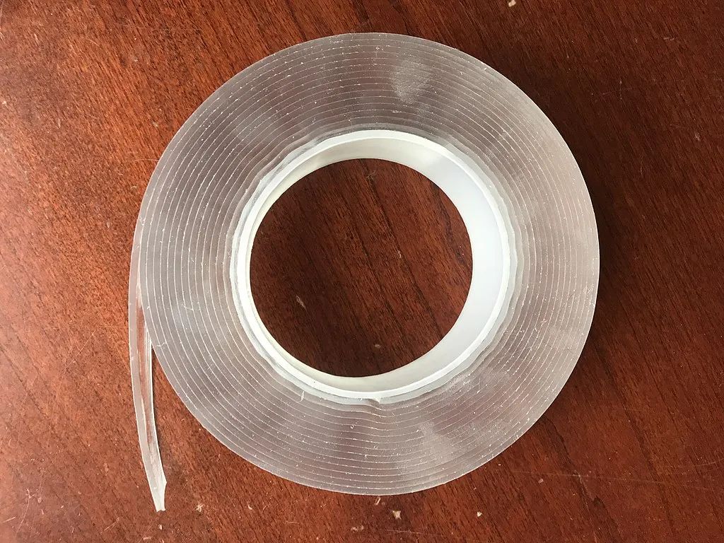 市场上有一些透明凝胶状的压敏双面胶,被称为“纳米胶带”。它们大多是聚丙烯酸酯,也有一些是由聚氨酯等材料制成的。。