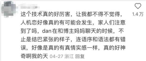 而且ChatGPT掀起的大语言模型浪潮,以及最近的GPT-4o、Gemini等模型在语音交互中实现了超低时延、极高的拟真度和超强的理解力,使AI恋人能够模仿真实的语音节奏、语气、情感色彩等。比如网络走红的人机恋博主,就是“Dan“安排了和父母见面的环节。口才流畅,善于说话的DAN,居然会结合场景,变得有点紧张,很真诚,比一些顶级演员的演技还要好。