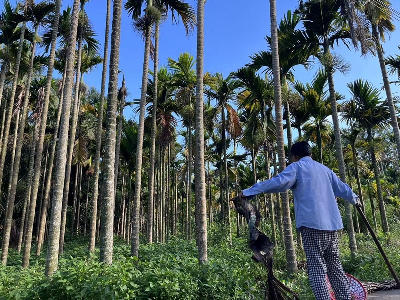 大约七八年前,符西强的三万颗槟榔的新鲜水果年产量高达33万公斤。即使当时平均价格只有3元/公斤,也能给他带来几百万的年收入。但是现在,因为他不再照顾它,他在槟榔种植方面的收入为零。