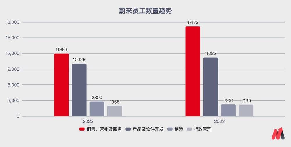 蔚来还调整了整个内部销售系统,同时增加了销售人员数量,但工资略有下降。