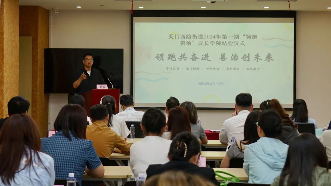 6月12日,天目西路街道举行了第一次“领先善治”成长学院成果展示暨结业仪式,意味着两个月的培训课程圆满结束。街道党工委、服务办公室、党建办公室、自治办公室等部门相关负责人出席仪式。