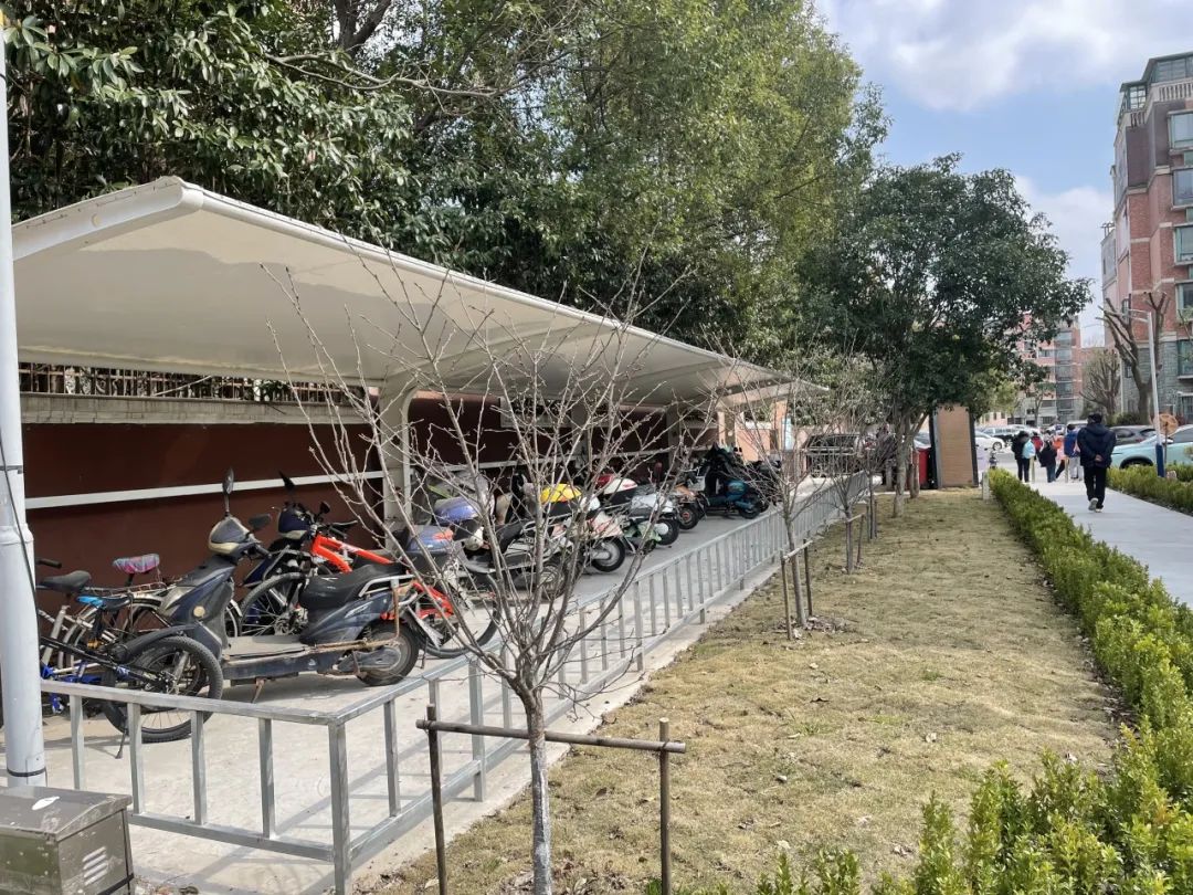 微更新的第一步是在垃圾桶后面铺一条小路,直接到达侧门,居民再也不用经历垃圾桶了。在居民的建议下,社区利用墙壁空间搭建电动自行车停车棚,设置充电设施和消防设备,方便周边走廊的电动自行车停车充电。