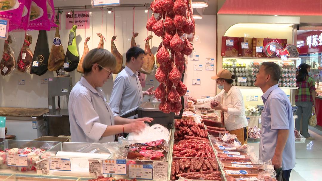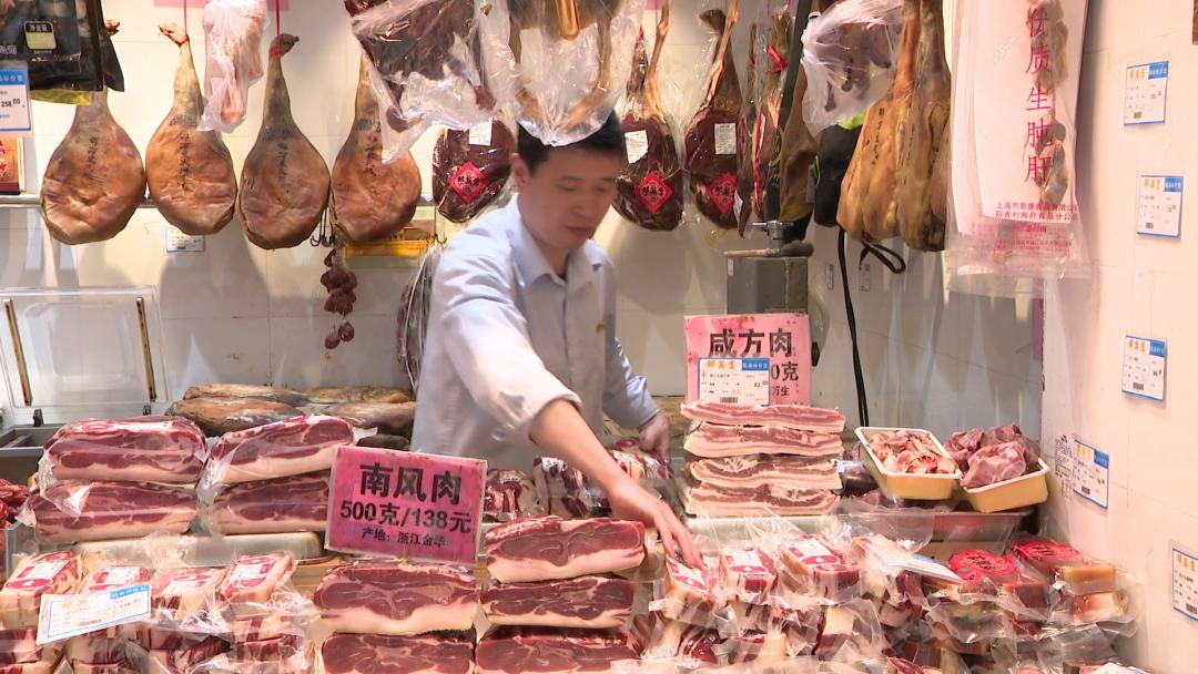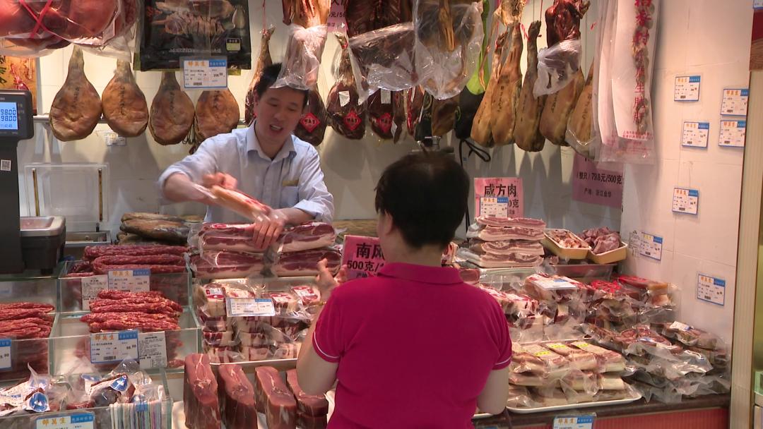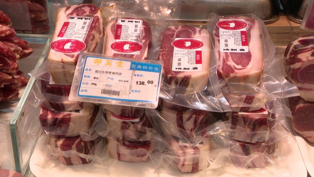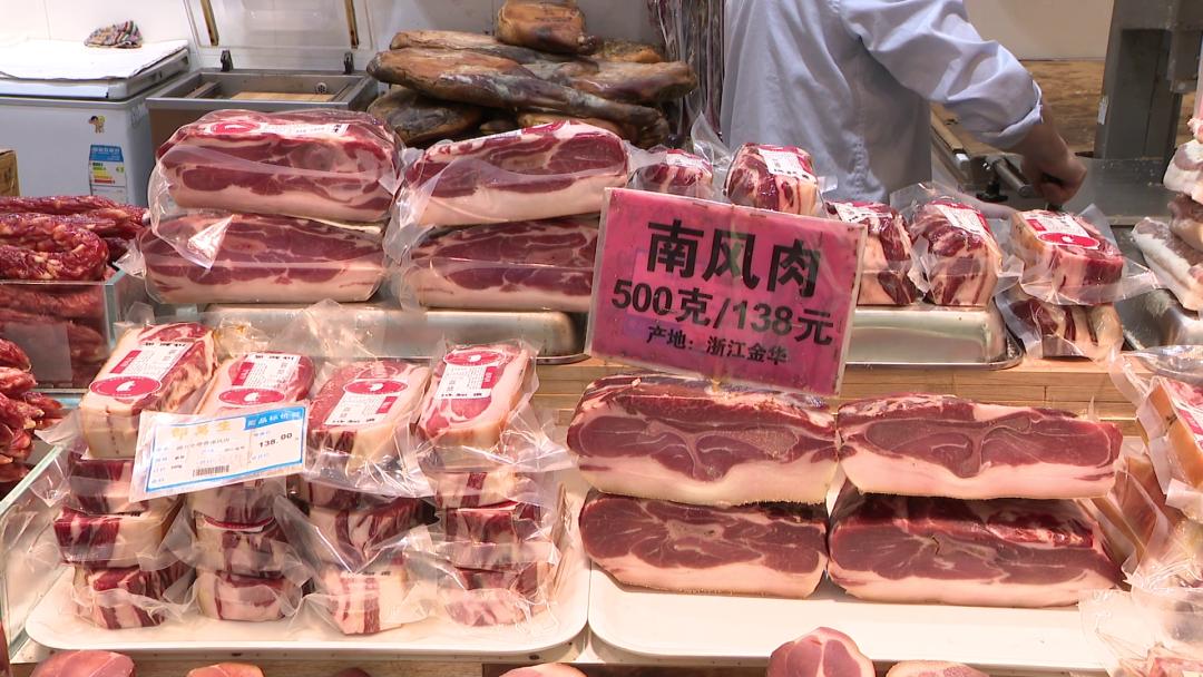 6月13日上午,记者在南京路步行街老字号邵万生腊肉柜台看到,不断有市民前来购物,很多都是针对刚上市的南丰肉。每年到了这个时候,市民何阿姨总会买一些南风肉品尝鲜,“买一些南风肉煮饭,放一些香肠、香竹笋叶,烧出来很香。有时能蒸厚百叶。现在六月黄出来了,还可以一起烧。烧冬瓜汤也很好吃,小孙子最喜欢吃。”