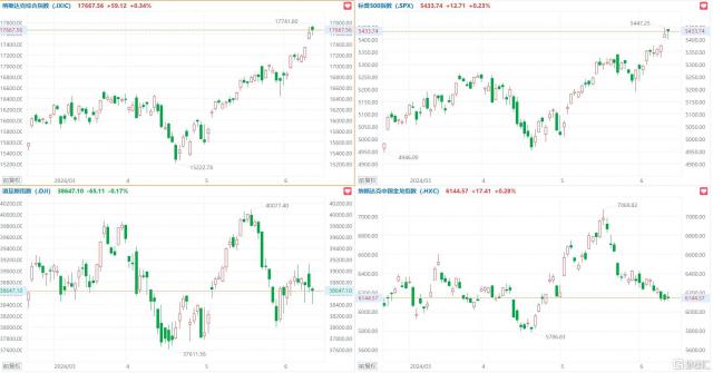 1、纳指、标普 500 指数再创新高,苹果、英伟达、微软均创收市场新高;
