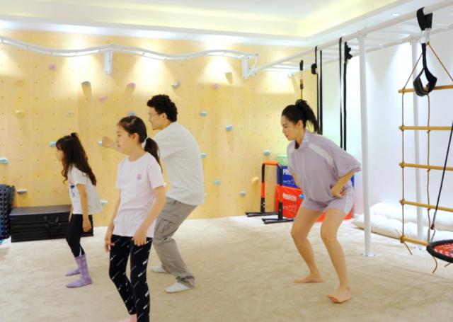 每天和儿子一起打篮球;和两个女儿一起学跳舞