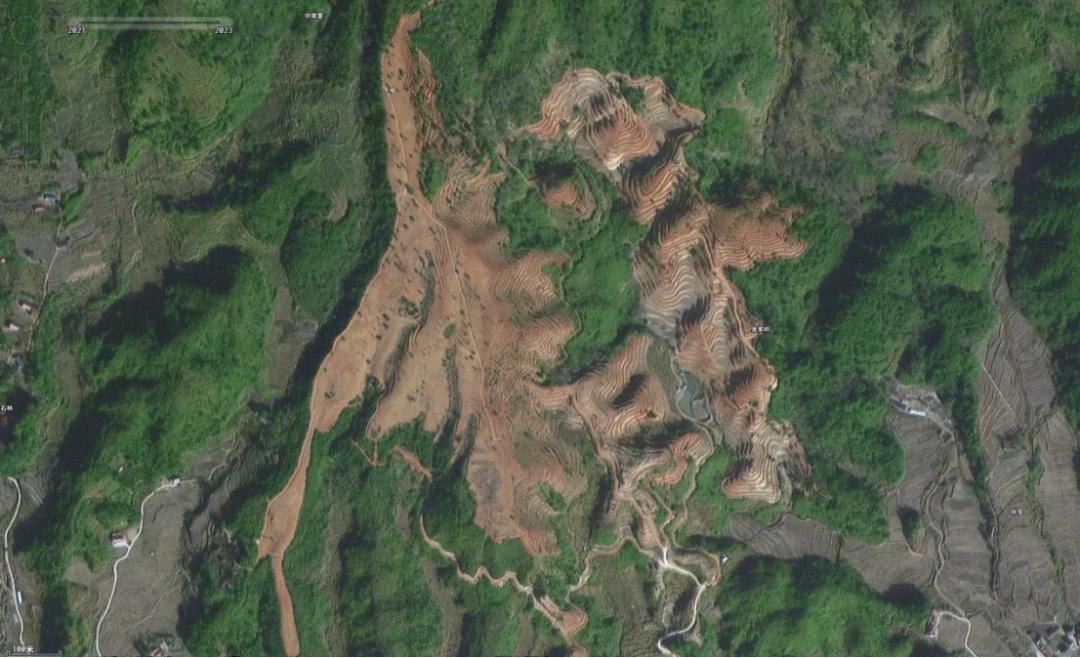 从卫星遥感地图来看,在九江市修水县,检查人员发现有大量的露山,与周围植被覆盖的绿色形成了鲜明的对比,这些露山上有一圈类似年轮的线条。这是什么情况?