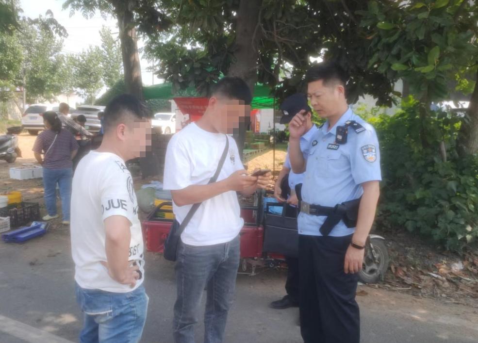当天上午10点左右,桐柏县派出所埠江派出所接到报警,称是湖北黄石商人杨某,来埠江镇购买鲜桃。因为他们把错误的账户交给了两个果农,并要求警察帮助他们处理。接到报告后,值班民警迅速赶到现场,便与报警人杨某沟通交流,详细了解事情的发生情况。原来,客商杨某当天上午从信阳来到桐柏县埠江镇鲜桃市场购买桃子。因为计量器是一个公斤单位,杨在交易的时候误以为是公斤单位。经过四次交易,杨发现自己多付了桃子钱,马上找果农解释原因。两个没有离开现场的果农退回了他们多付的钱,另外两个果农已经离开市场,共计830元。由于杨某不认得已经离开的两大果农,非常着急,无奈地报警求助。