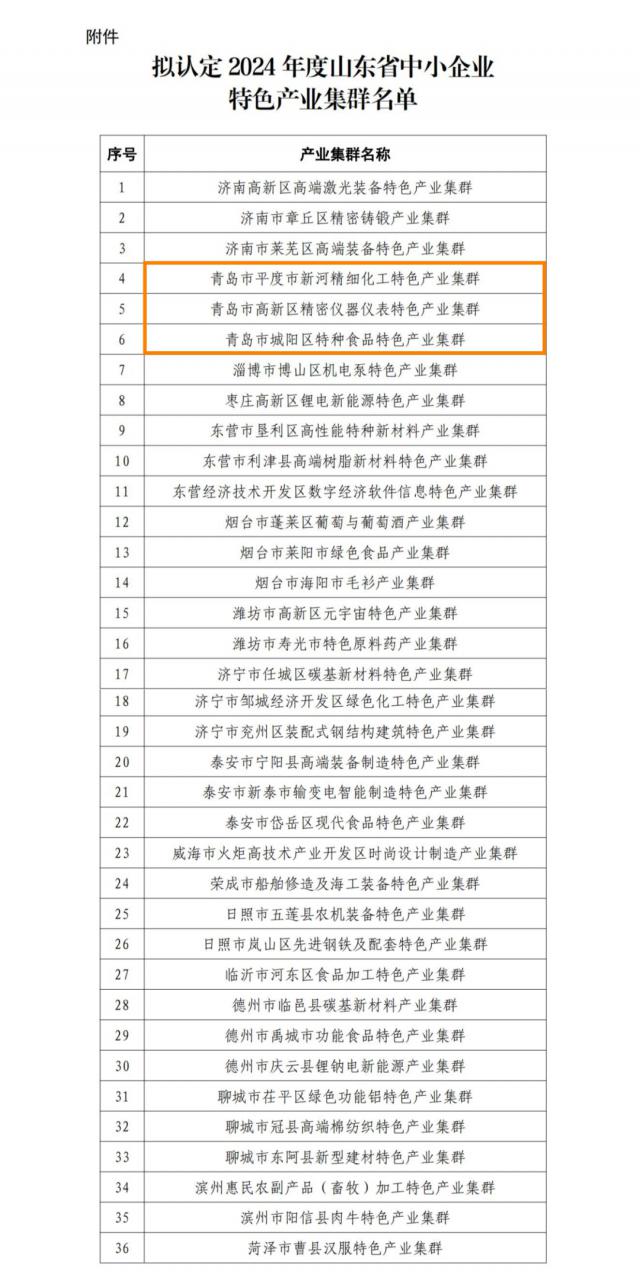 公示山东省中小企业特色产业群名单 拟当选的青岛三家