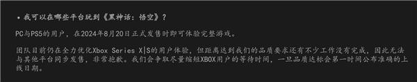 值得注意的是,首发并未提及。 Xbox Series X|S 版本,游戏科学当时说,因为升级还没有达到标准,所以会推迟销售。