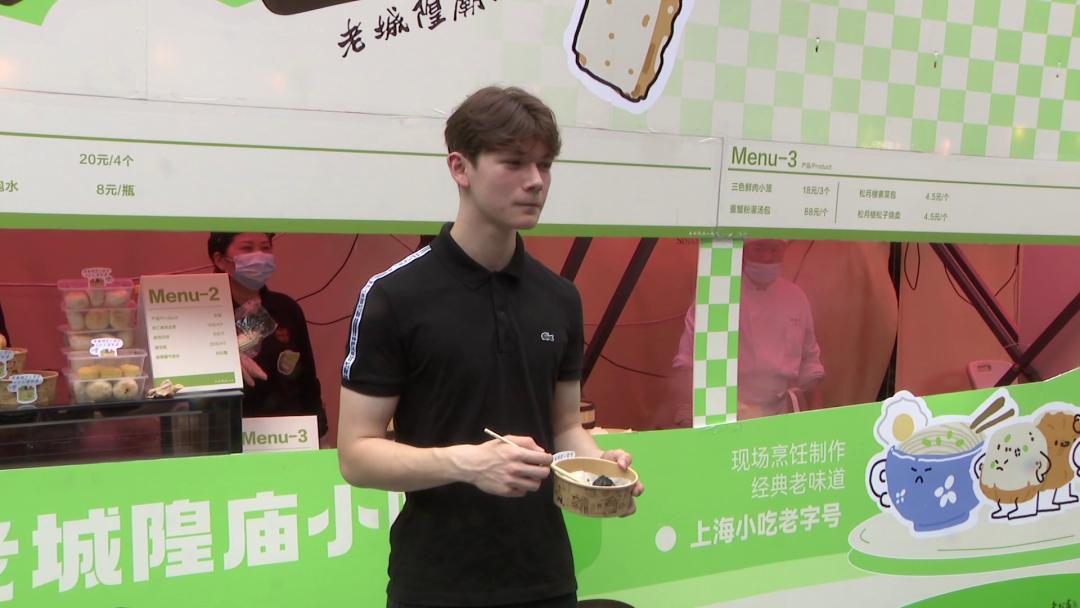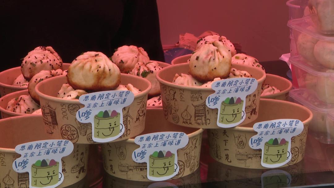 现场制作的上海传统煎饺、馒头、葱油饼等小吃也吸引了不少市民和游客放慢脚步。一位海外游客告诉记者,这些上海小吃很好吃,我很高兴在这里品尝到上海的味道。