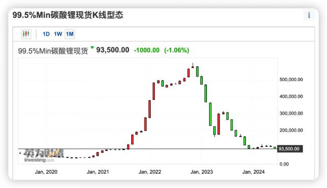 在过去的一年里,锂价累计跌幅超过 从今天的数据来看,80%,2024 2008年也没有停止下跌的趋势。尽管今年早些时候价格已经短暂企稳,但供应链仍在努力消化库存,客户普遍持观望态度。