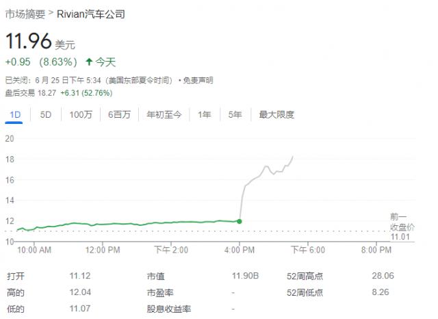 受此消息影响,美东时间 6 月 25 日周二,Rivian 在美股市场之后,一度暴涨超过一度。 50%,此前,Rivian 周二已收涨 8.63%,而大众汽车美股也小幅收涨。 0.49%。