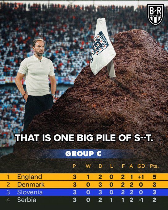 第一场比赛1-0击败塞尔维亚,第二场比赛1-1击败丹麦,第三场比赛与实力不佳的斯洛文尼亚交手...和法国一样,中前场阵容华丽,但是英格兰的催眠水平甚至更好。