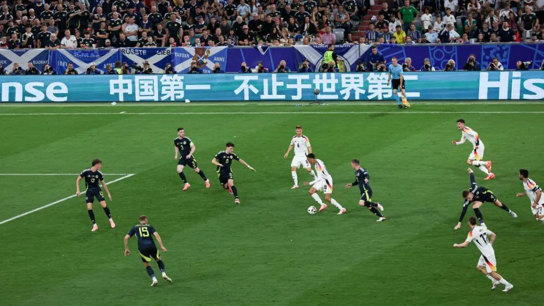 最近在德国举办的欧洲杯正在如火如荼的进行着,但是网友们发现场上所有的广告都变成了中文方块字,让他们有了看中超的感觉。