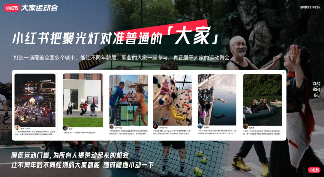 并且,在选手们走下神坛之后,人们对竞技体育的距离感也逐渐缩短。在专业比赛中,运动并不一定要摘金夺银,有趣、烟火气也足以逐步成为运动的理念。比如小红书平台最近在做的“大家运动会”,借助巴黎奥运会街舞、滑板、冲浪等新项目在社区平台上的高人气,提出了"小动一下更生动"目标群体,奥运会和取悦自己的随心所欲的运动可以平起平坐,将运动转化为生活方式的一部分。