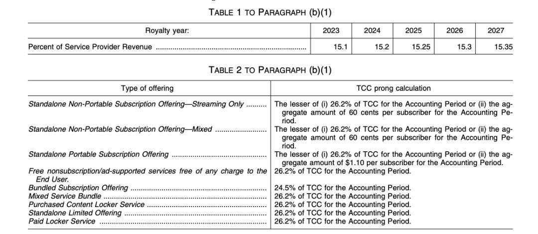 制定流媒体版税率是一个复杂而动态的过程。美国版税委员会(CRB)每隔五年,美国的机器版税率将再次受到审查。如上所述,2022年底,CRB和CRBNMPA、2023-2027年,NSAI和DiMA等美国机械版税率(也称Phonorecords) IV或"Phono IV")达成和解,允许流媒体平台为捆绑服务支付较低的机械版税费率。