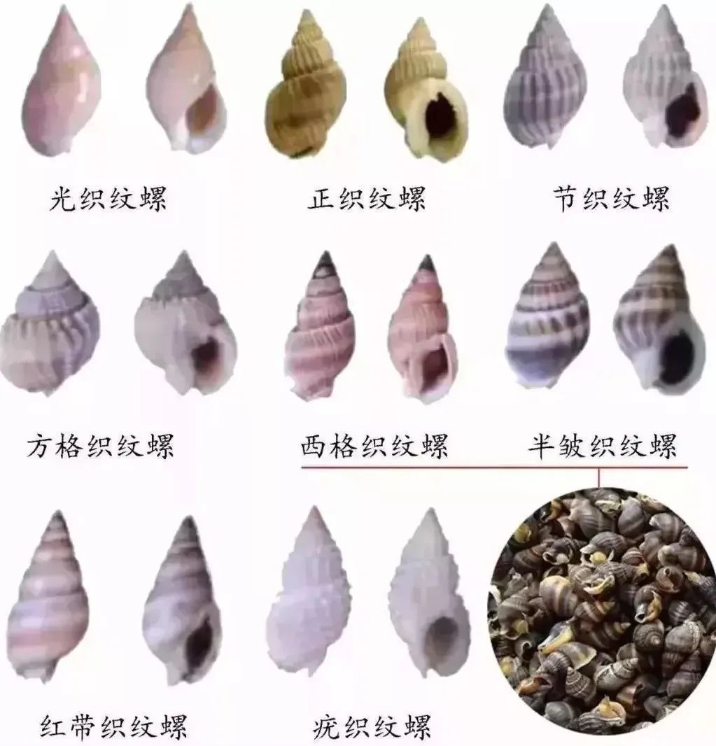 织螺,俗称海螺、海螺、麦螺或白螺,主要分布于浙江、福建、广东等沿海城市。其外观特点是尾端尖长,长约1厘米,总宽约0.5厘米,指甲盖大小约0.5厘米。