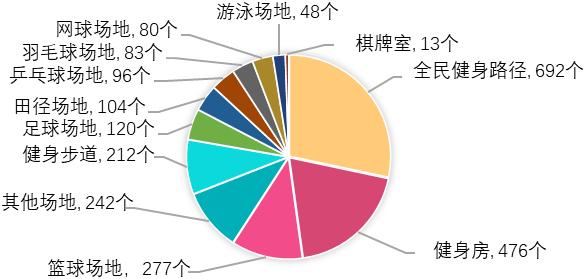 全区全民健身路径692条,场地面积30565平方米;476间健身房,场地面积147268平方米;212条健身步道,长71.92公里,场地面积139136平方米。
