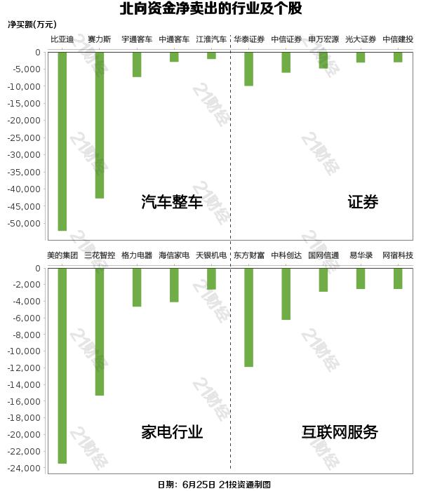 据 21 投资通智能监控,6 月 25 日本,北向资金净卖出 33.67 其中沪股通净卖出亿元 9.12 亿元,深股通净卖出 24.56 亿元。