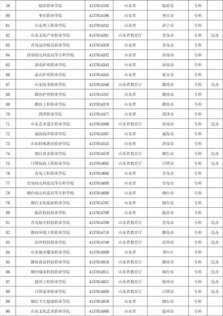 十五、山东(90所)