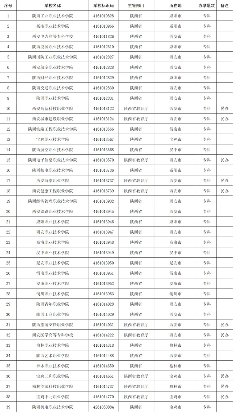 二十七、陕西(39所)