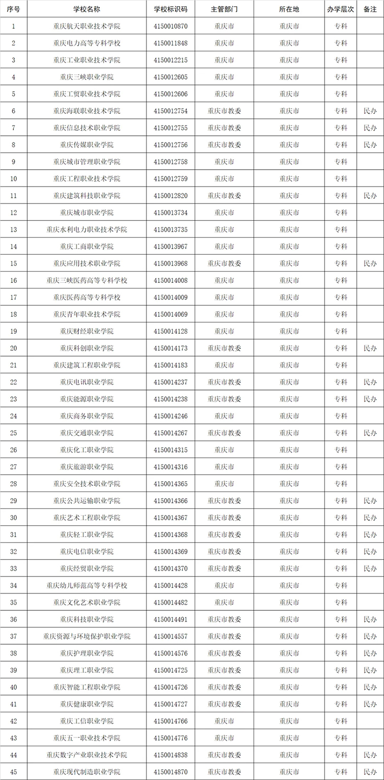 重庆(45所)二十二