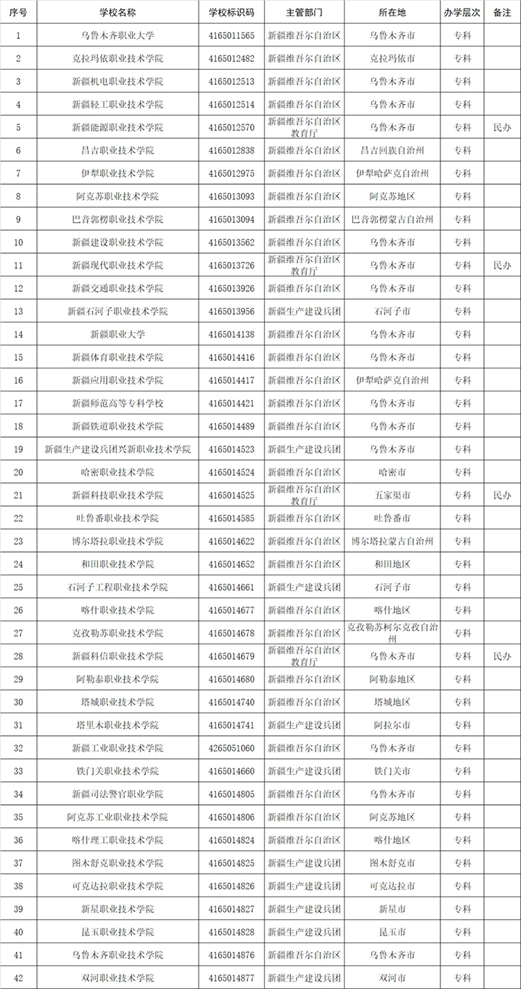 三十一、新疆(42所)